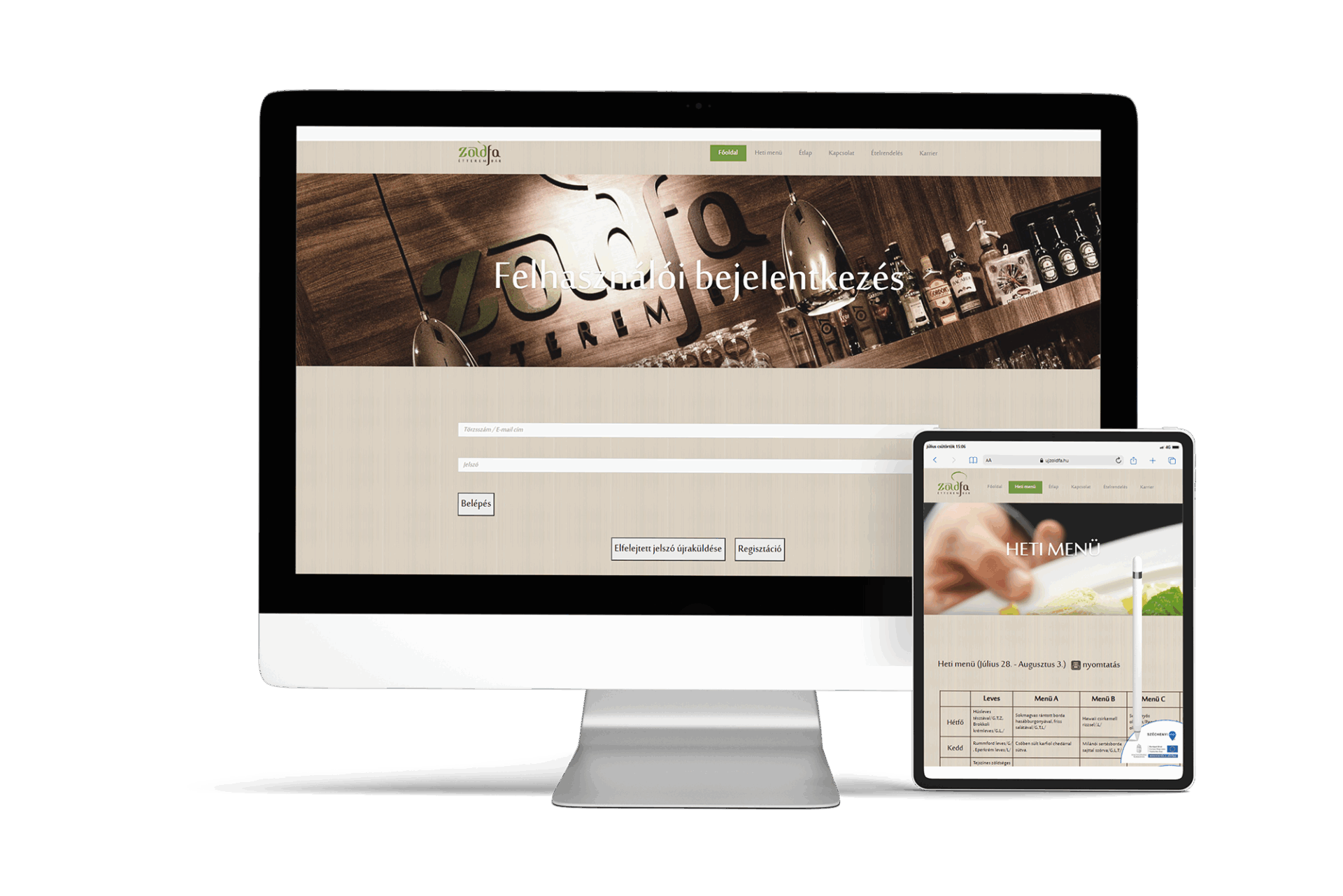 A győri Újzöldfa étterem egyik legrégebbi ügyfelünk. Weboldala és az egyedi fejlesztésű menüztető rendszer már hosszú évek óta működik. Online menürendelés, azonnali, akár SZÉP kártyás fizetéssel, automatikus számlaküldéssel, NTAK kompatibilis rendszerben.